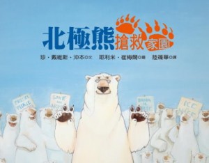 北極熊搶救家園這本書是在說有一個北極熊,他覺得冰越來越少,會威脅到牠們的生活環境,所以召及大家寫了本書,還辦了在遊客面前拉布條宣導的活動,要請大家減少地球暖化,由自己身邊的行為做起!看了這本書我覺得這個問題很重要,因為我們小小的行為就能夠改變地球生態,所以一定要避免做出傷害地球的行為才是正確的!
