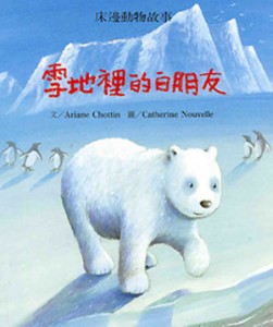 去認識其牠動物,像是雪兔、雪梟等等,最後交到許多好朋友呢,我覺得此故事藉由白熊媽媽帶著三隻小白熊生活,之後因小白熊想交朋友,所以從中學到原來在雪地裡有那麼多身體是白色的動物,除此之外也了解到小白熊的生活習性,和身體的構造,所以我覺得雖然故事很淺顯易懂,但卻附有很棒的學習意義,裡面許多動物的名稱我都沒聽過,甚至還不知道有這動物存在,學到很多呢!