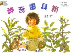 哥哥神氣的揮灑著畫筆和顏料,畫紙上一點一點的出現了美麗的景色,就像是變魔法一般,讓佳美忍不住也要揮灑一番,然而哥哥不願出借畫具。