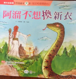 故事中的阿溜是隻蛇,但牠不想當蛇因為害怕脫皮,因此牠求山神讓牠變成別的東西,於是被施予魔法的牠吃了什麼就變成什麼,牠有變成飛天掃把、拐杖等等,卻發現其實換了其它東西不見得好,我覺得大家常常會覺得怎麼別人似乎都過得很好,比較之下自己是不好的,但每個人都有辛苦的地方是別人看不到的,所以經過角色互換便能體會到對方的辛苦,不過現實生活中大家很難有這樣的體驗,所以換位思考更是重要呢。