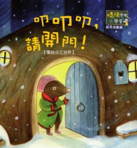 下著大雪的夜晚,小鼴鼠準備睡覺,突然傳來叩叩叩的敲門聲,森林裡的青蛙、松鼠、獾、山雀都來了,希望小鼴鼠收留。可是當大家喝著熱茶、蓋著暖暖的被子時,大野狼跑來了,還想把大家吃掉,動物們該怎麼辦?