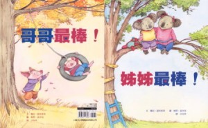 故事裡面說到哥哥會教自己游泳和爬樹,並做很多的事情,哥哥也會給自己很多很多的愛,書本的另一面則是說姊姊也會教自己很多事情,像是教自己玩遊戲、爬樹、看書等等,然後姊姊也是給自己很多很多的愛,所以從書本裡面可以知道有兄弟姊妹的快樂,還有他們可以教導自己許多的事情,也可以陪伴自己成長,然後可以一起分享很多的事情,是件很棒的事情!