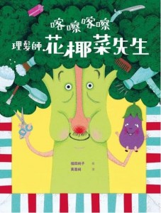 這位神奇的花椰菜先生,總是能替顧客剪出最棒的髮型!一踏進理髮店裡,就看到玉米小哥、白菜小姐、小蘋果,還有白蘿蔔先生,眾人排排坐等待著讓花椰菜理髮師大顯身手。